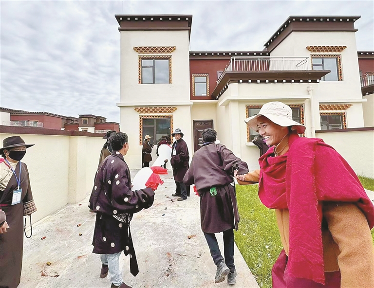 8月10日,四川省甘孜藏族自治州色达县全县棚户区改造及乡村振兴示范项目——色柯镇约若新村举行交房仪式,240户牧民喜迁新居,开启了新生活。红顶白墙的藏式新居错落有致、平坦整洁的柏油路穿村而过,幼儿园、商铺等配套设施一应俱全。