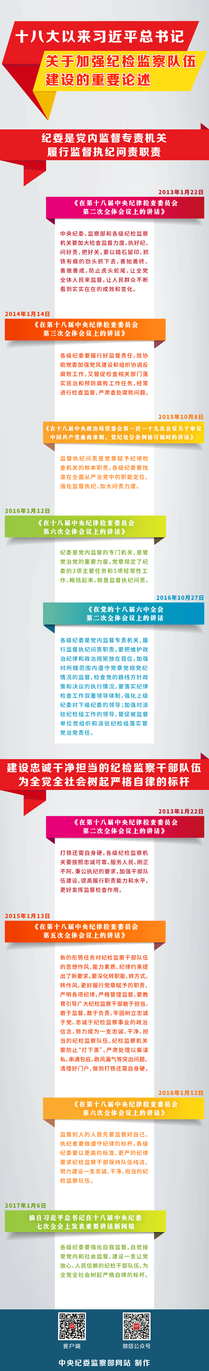 2017年1月6日,习近平总书记在十八届中央纪委七次全会上再次强调,各级纪委要强化自我监督,自觉接受党内和社会监督,建设一支让党放心、人民信赖的纪检干部队伍,为全党全社会树起严格自律的标杆。