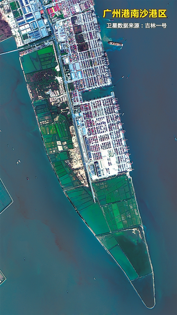 图为吉林一号卫星近日拍摄的广州港南沙港区卫星影像。 图片来源:新华网