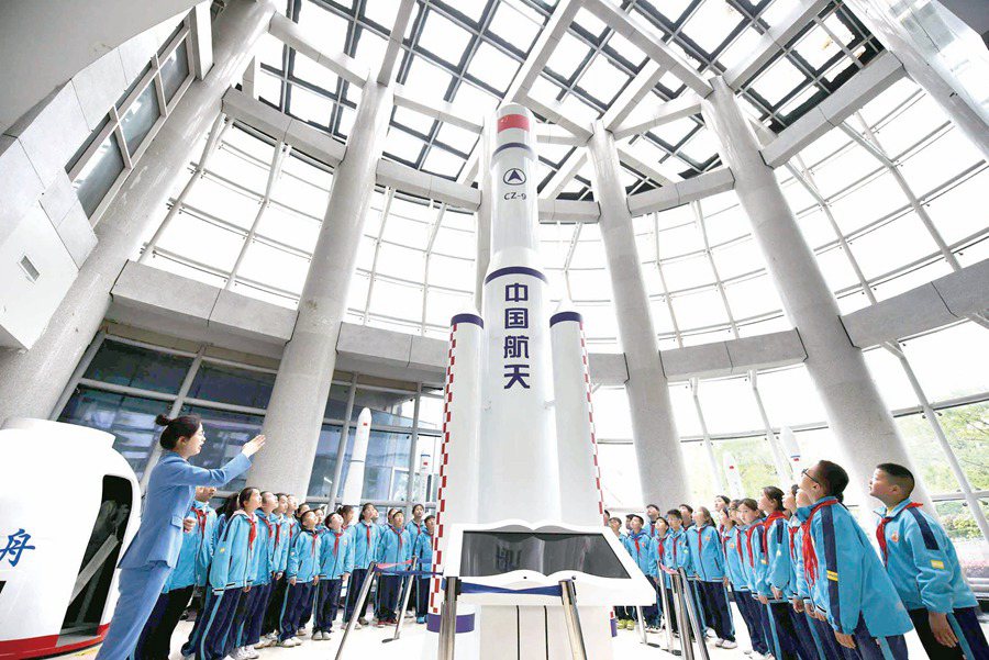 山东省临沂市郯城县开展“筑梦航天”主题科普活动,学生们在老师的带领下走进科技馆,参观航天展品,学习航天知识、激发科学探索热情。房德华 摄