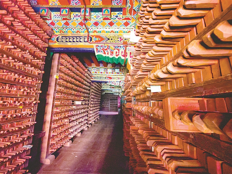 图为在四川省甘孜藏族自治州德格县拍摄的德格印经院院藏雕版。 新华社记者 沈伯韩 摄