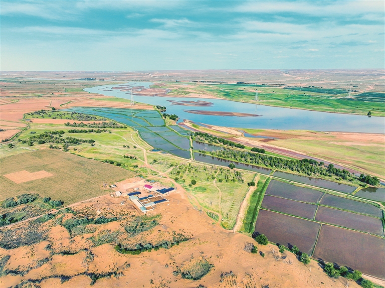 近两年来,内蒙古自治区把防风固沙和减少入黄输沙作为攻坚重点,推动黄河两岸620公里林草带全线贯通。图为近日,在巴彦淖尔市磴口县刘拐沙头,黄河蜿蜒而过。 新华社记者 连振 摄