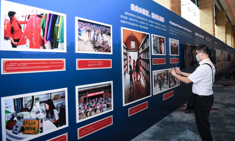 11月20日,作为2020年“读懂中国”国际会议(广州)的活动之一,“全面小康和脱贫攻坚的中国实践与世界贡献”主题展览在广州开幕。图为当日,嘉宾参观展览。新华社记者 邓华 摄