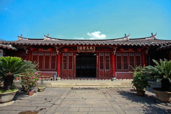 “襟带蓝水,背负阆峰,山川灵秀,人文所钟。”这是对贤良祠的赞誉。贤良祠是一座古色古香的闽南传统红砖建筑,占地6000多平方米,为三进四合院式。第二进祠堂为悬山式屋顶,宽深各3间。厅堂内外环墙嵌有大理石镌刻,包括康熙皇帝御书“太极图说”“巡子牙河建坝诗”“朱文公家训”等诗文。祠堂后面有个藏书楼,被小山、花园和小桥流水所环抱,南面为临水轩、荷池等,山光水色,争相辉映,景致宜人。