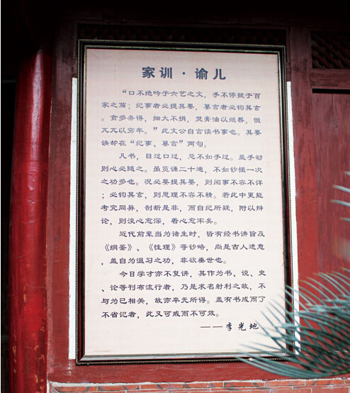 正观赏间,耳边传来琅琅读书声。原来是一群学生在诵读墙上张挂的李光地家训。