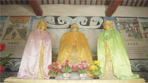 天宝六年(747年),唐玄宗李隆基敕建张公艺祠,亦称“百忍堂”,后历经一千余年,多有修葺和重建。今天我们看到的“百忍堂”,是1994年台前县政府与张氏后裔重新选址修建的,位于河南省台前县桥北张村张公艺墓南50米处。走进祠堂,张公艺的塑像端坐正中央,两侧东西墙上画有“罕见家庭”“敕赐金匾”“唐王访贤”“百忍义门”等14幅壁画,这些壁画再现了张氏家族“百忍传家,孝友可师”的生动景象,彰显了张公艺礼让齐家的治家理念。