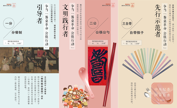 其中,“一分”是分餐制,在公共就餐的环境下,提倡鼓励分餐制;“二公”是公筷公勺,餐饮企业、城乡节庆与红白喜事等集体聚餐,每张餐桌实行公筷公勺;“三自带”是自带筷子,在单位订购外卖快餐和家庭朋友结伴外出游玩,自带方便卫生筷子,减少使用一次性筷子。