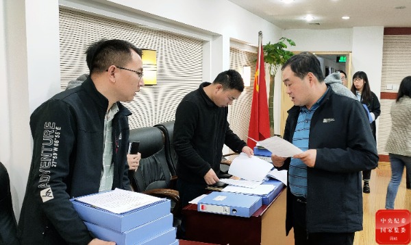 芜湖市纪委监委联动监督推动开展全市定点医疗机构医保违法违规行为专项治理。图为该市纪委监委“室组”联动监督组在检查相关工作台账资料。 赵锴 摄
