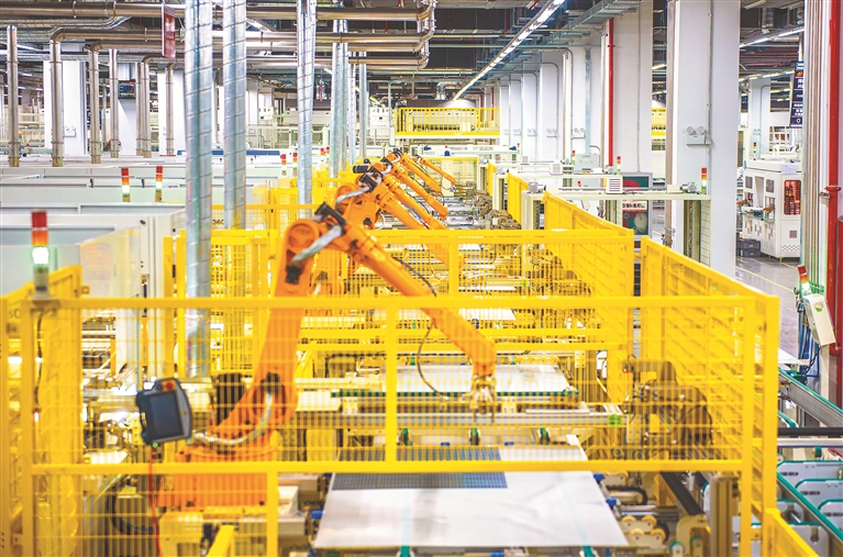在阿特斯阳光能源科技有限公司(以下简称阿特斯)的车间内,自动化的生产线正在高效率运转。伴随着激光划片机、串焊机和机械臂等自动化设备的忙前忙后,一块块蓝色的光伏组件经过加工、组装,走下生产线,打包发往各地。作为全球头部光伏组件的制造商之一,阿特斯落户嘉兴国家高新区是奔着这里的“集聚效应”而来——本地企业福莱特玻璃集团股份有限公司生产的光伏玻璃是阿特斯光伏组件生产中不可或缺的原料,阿特斯在这里投资建厂,有助于企业之间强强联合、降本增效。