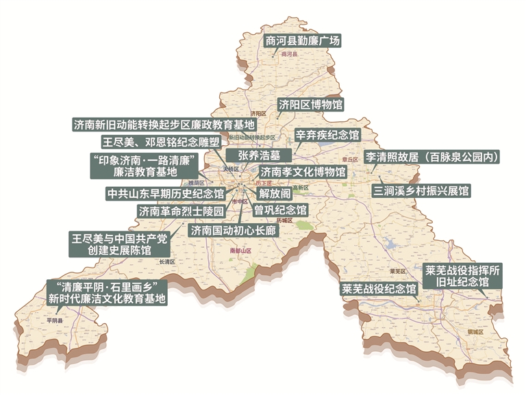 济南市主要廉洁教育场所分布图。济南市纪委监委供图