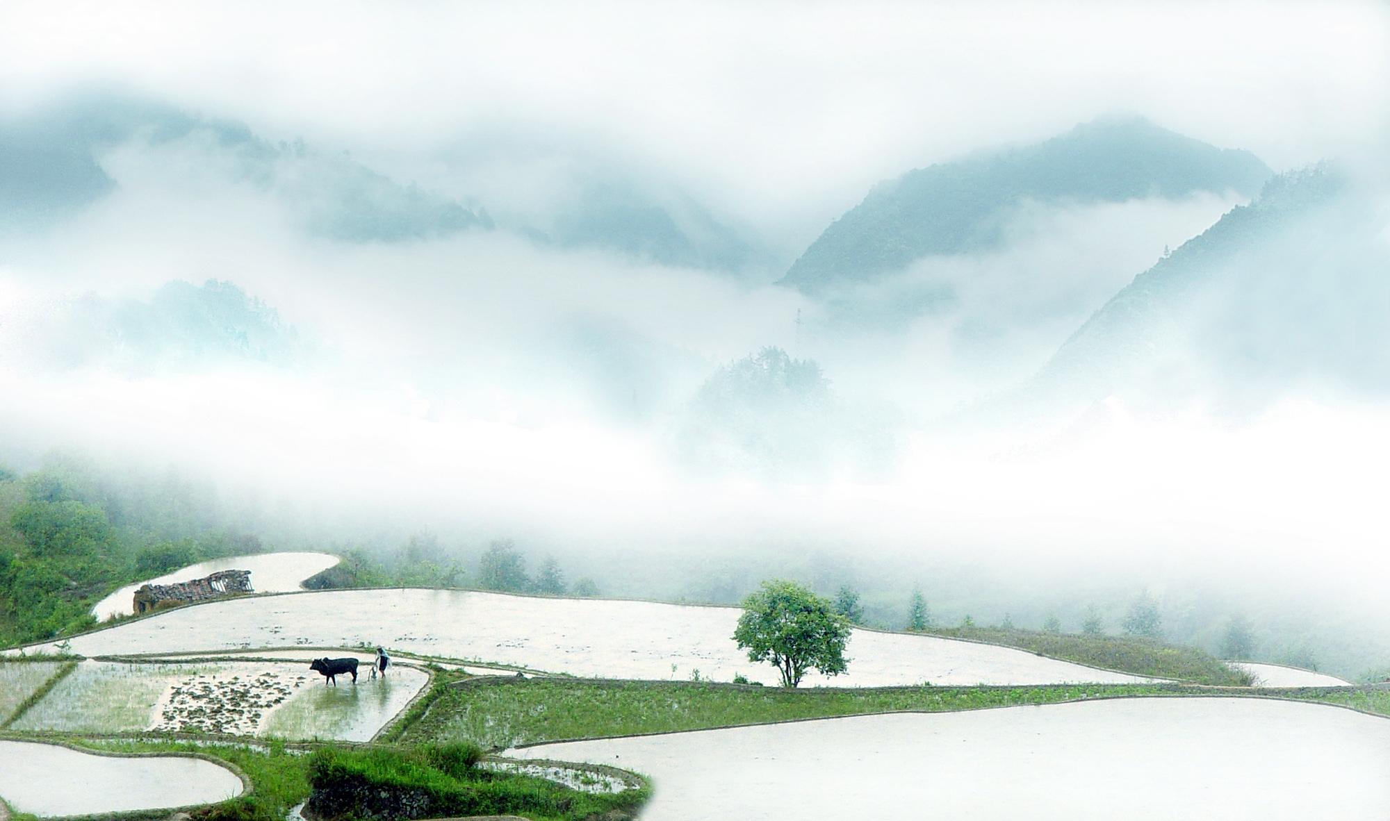 在润物细无声的春雨中,大地渐渐开始呈现出一派欣欣向荣的景象,浙西南山区农民早早地为春耕春种忙碌起来。(浙江省遂昌县纪委监委供 章建辉 摄)