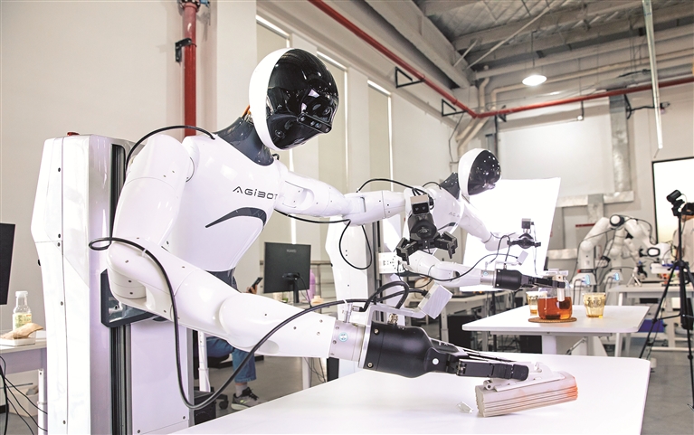 独角兽企业上海智元新创技术有限公司在人形机器人数采中心对机器人产品进行场景实训。上海智元新创技术有限公司供图